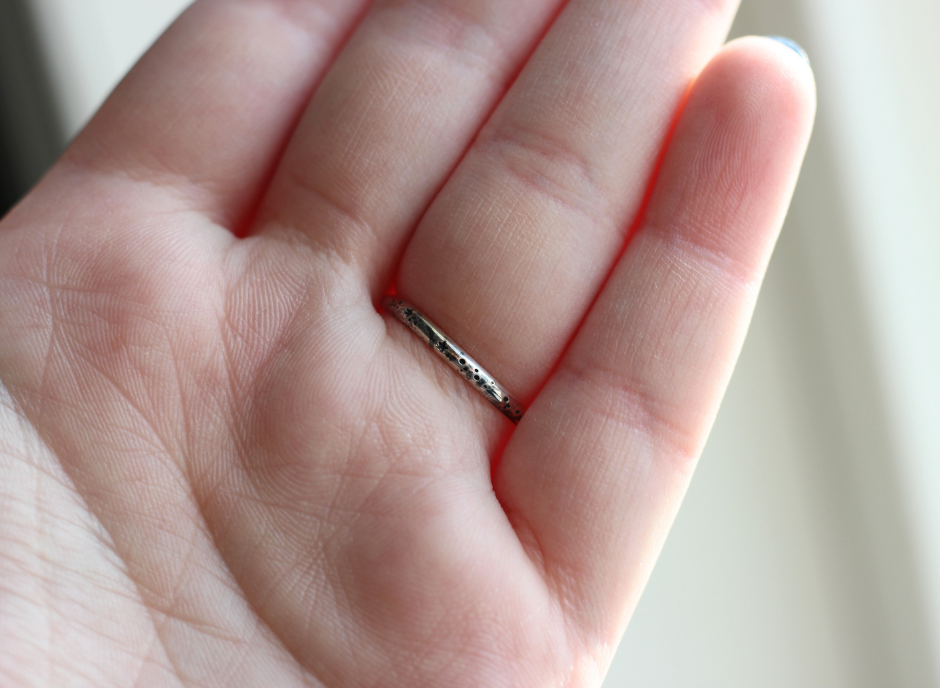 This adjustable ring features a round white moonstone and a turquoise heart with a star stamped band. This ring can be adjust from a size 6.75 up.